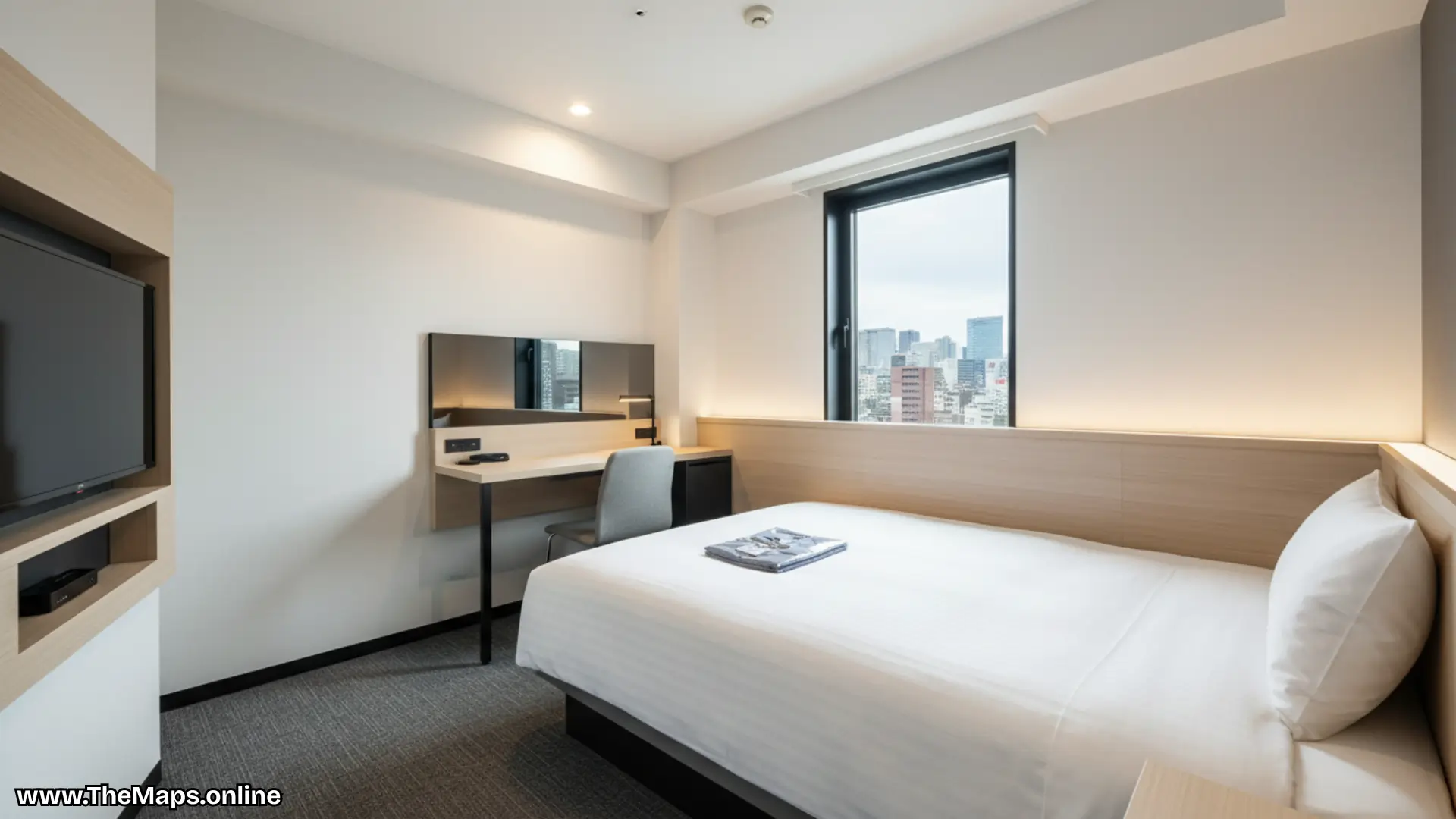 Business hotels are an excellent secret. They cater to salarymen. So, they are efficient. The rooms are small. But, they have everything. You receive a bed, a refrigerator and a shower.